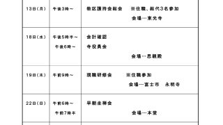お知らせ 谷田山東光寺 令和8年1月の予定 PDF版ダウンロード谷田山東光寺令和8年1月の予定実施日時 間行 事 内 容2日(木)午前10時~新年拝請 <本寺桃原寺>(住職参加)9日(金)午後5時半~役員... 2025.12.30 お知らせスケジュール
